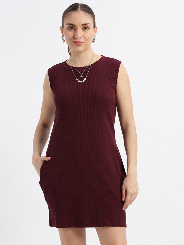Stripe Waffle Cool blue Asymmetrical Hem Dress